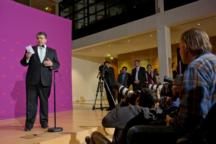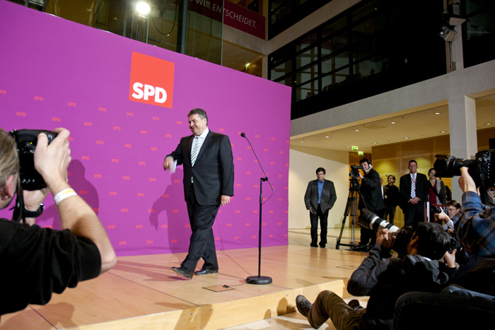 Sigmar Gabriel, dopo aver affermato ai giornalisti, di andare sicuri e confidenti alle trattative con la CDU, ha risposto fugacemente alla domanda di un giornalista riguardante il secondo peggior risultato elettorale della storia dell’SPD.