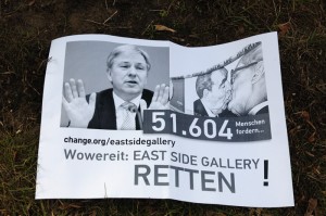 Protest-East-Side-Mauer-Gallery-Berlin-proteste-a-Berlino-Klaus-Wowereit-Thierry-Noir-Dr-Motte-Christian-Stroebele-Kani-Alavi |